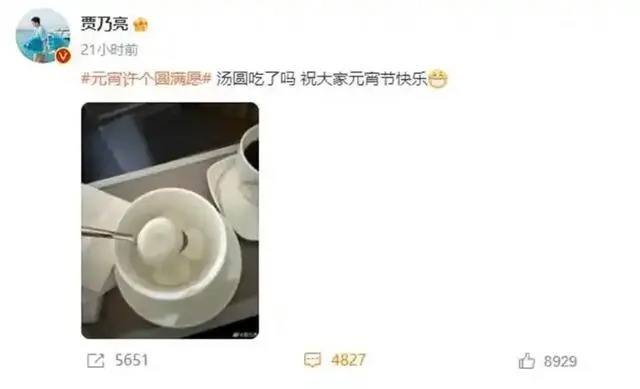 2月12日,贾乃亮社交账号曾更新元宵推文。